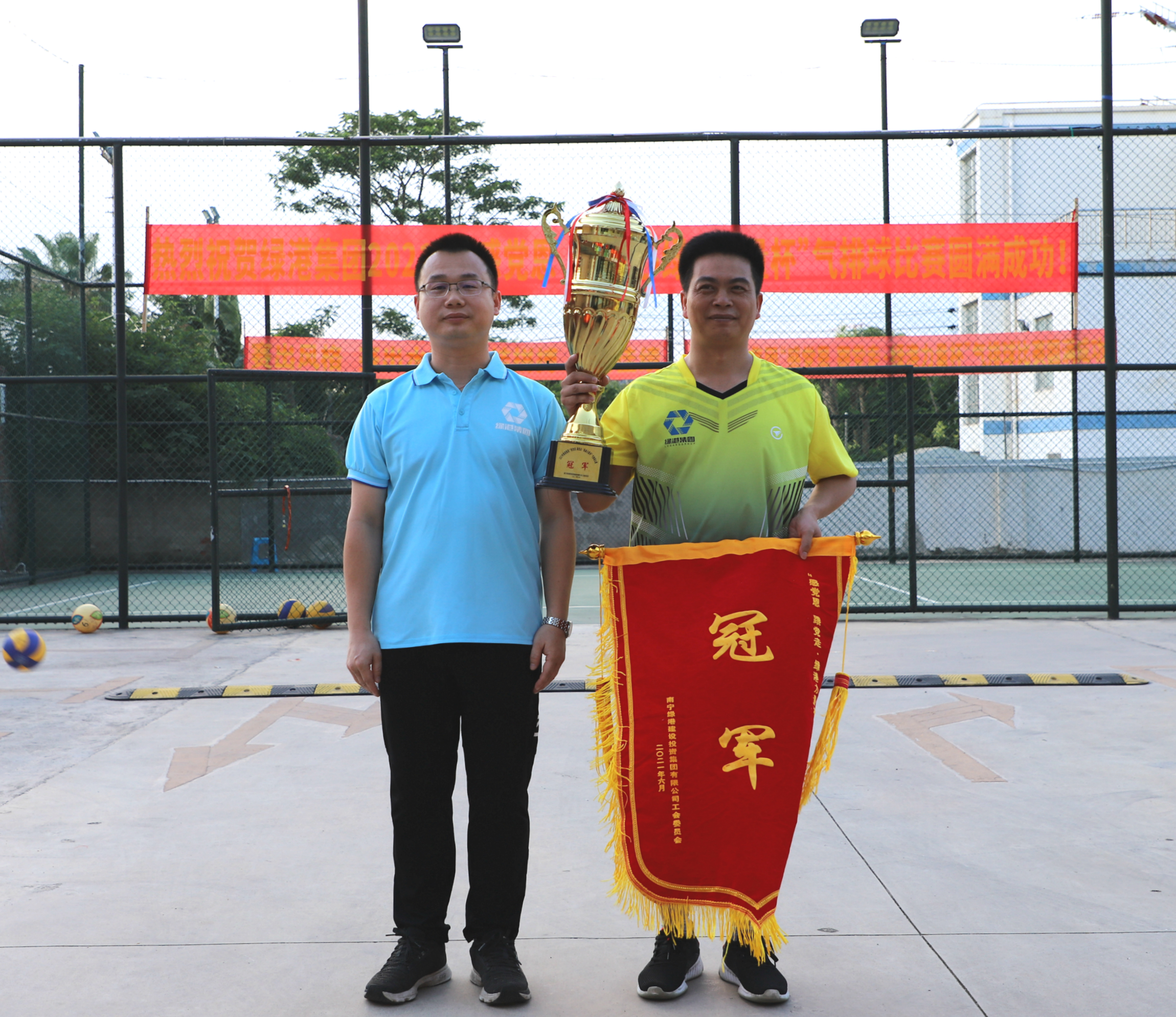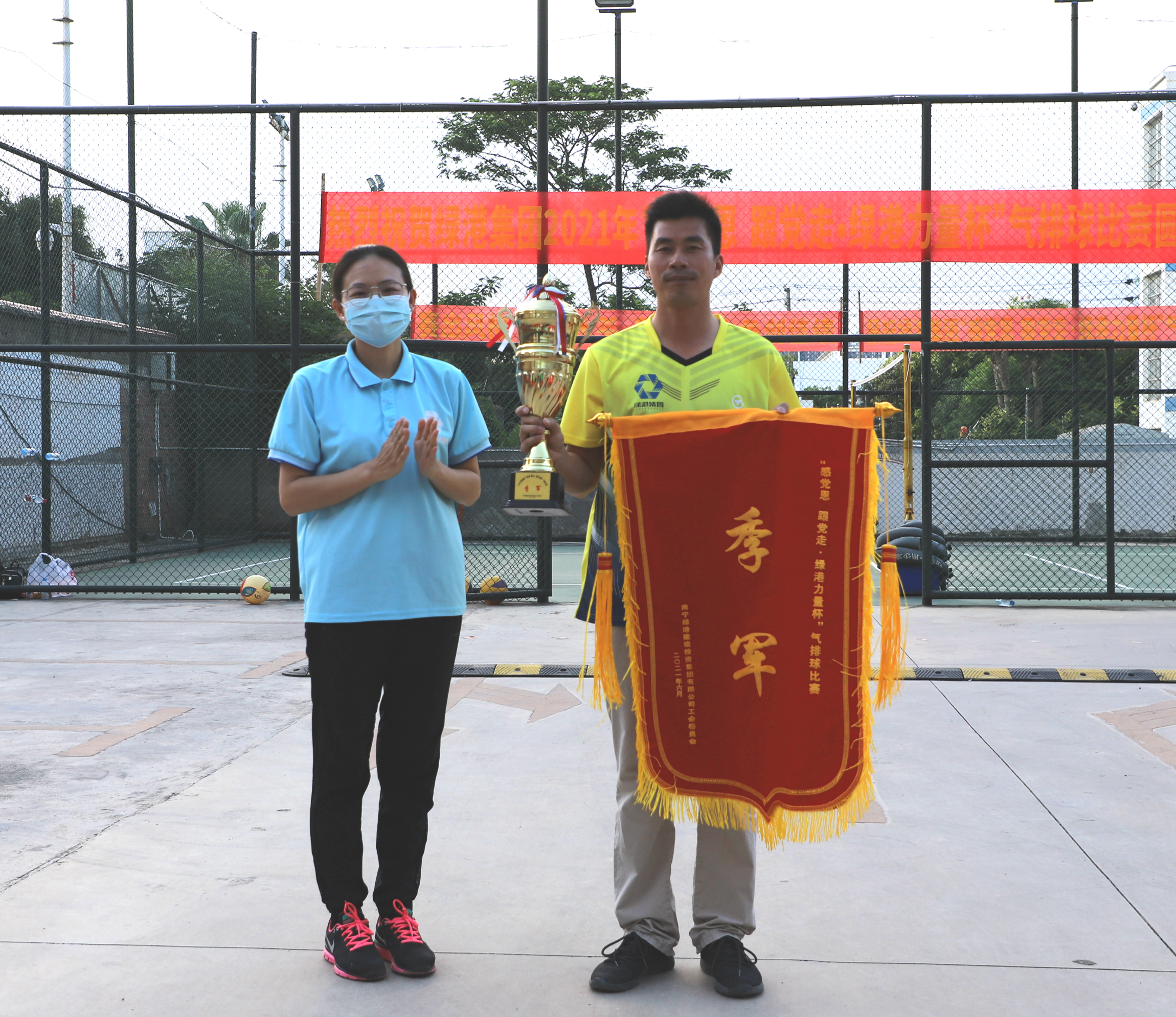 杏耀注册党委书记、董事长龚国强为冠军队伍颁奖